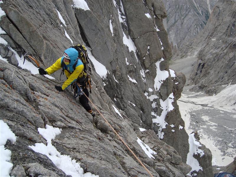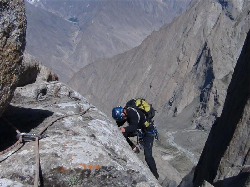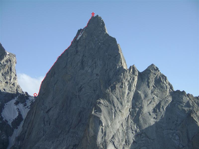 Маршрутът: „Българският път“ по Западната стена, 650 м, M6, AI4, 6a, в алпийски стил с един бивак. За междинно осигуряване са използвани само клеми, френдове и ледени клинове. Изкачен с 14 въжета по 50 м. Слизане с рапели по пътя на изкачване и малко вляво от него.