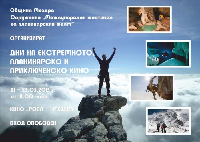 Организират ги на 21, 22 и 23 март т. г. (четвъртък, петък и събота) от 18.00 часа в кино “Роял” Община Мездра и Сдружението “Международен фестивал на планинарския филм”.