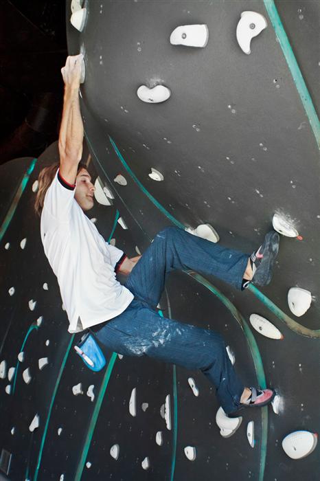 Крис Шарма е един от първите "откриватели" в залата. Сн. boulderland.eu