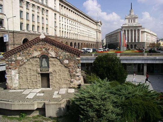 Църквата “Света Петка Самарджийска” със стъклената икона във фасадата й,
