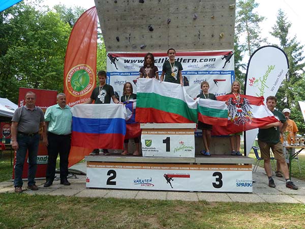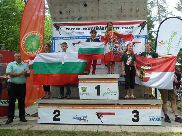 Снимки и резултати от Petzen climbing trophyНа 5, 6 и 7 юли се проведе международното състезание за деца, юноши и девойки PETZEN TROPHY 2013, в дисциплините скорост, трудност и боулдър. Участваха 20 клуба от 15 европейски държави и един от Бразилия - общо 227 състезатели. От България участваха шест клуба.