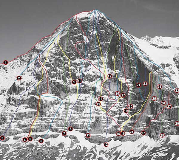 Маршрутите по Северната стена на Айгер към 2000 г.