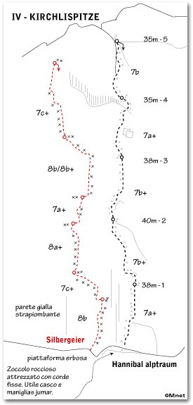 Въжета: 7a+, 6a, 6c+, 6c, 7b+, 7c+, 7b+, 8b, 8b+, 7c+, 7a+.