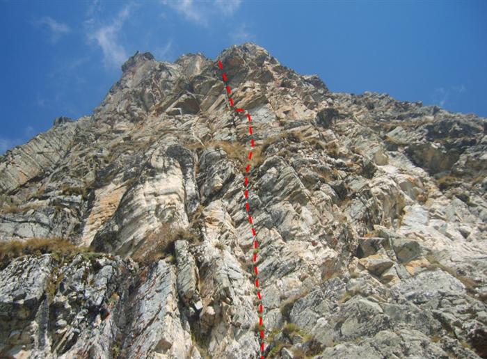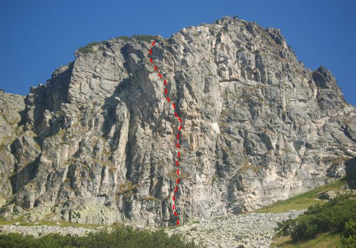 Югоизточната стена на Малък Ковач е напълно девствена, висока между 40 и 150 м и разгъната на около 800 м. Тя предлага възможности за много нови маршрути. В централната част има ярко откроени три логични линии. Ние си избрахме средната от тях (в червено).