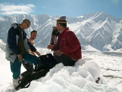 В подножието на Нанга Парбат – Жоел Вишневски (в средата),