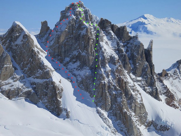 Хейли и Харт стигнаха до върха по премиерен маршрут, който върви вляво от източния гребен. Той бе наречен “El Lobito” и преодолява ледено-мискстов терен със стръмни снежни участъци (400 м, AI4+, M5, A0). Ключово се оказа последното въже (M5), на което има едно място A0. От върха двамата слязоха и частично се спуснаха по “Carrington-Rouse”.