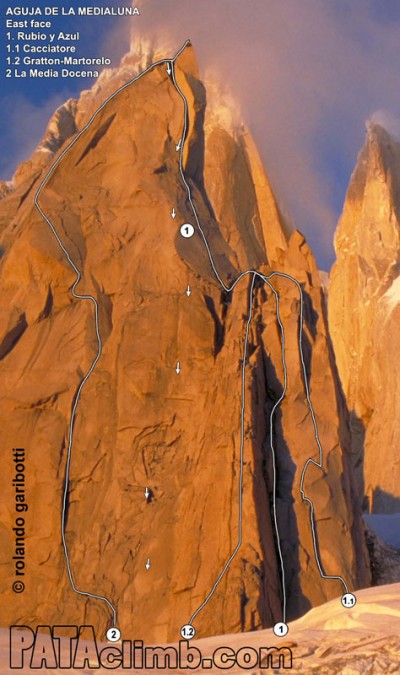 По източната стена на Иглата Медиалуна (Aguja de la Medialuma) аржентинската свръзка Хорхе Акерман (Jorge Ackermann), Томас Агило (Tomas Aguilo) и Николас Бенедети (Nicolas Benedetti) прокара през февруари т. г. дългия седем въжета премиерен маршрут “La Media Docena” (6c).