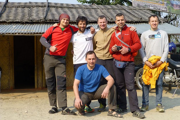 Експедицията в пълен състав в Пангпема: отляво Адам Биелецки, Алекс Чикон,