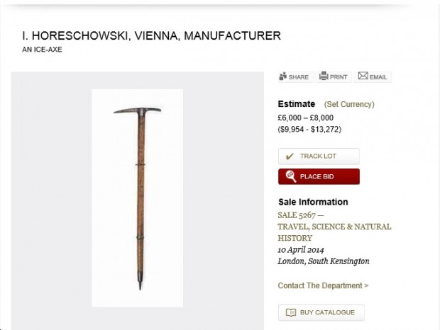 В началото на април т. г. на търг, организиран от аукционната къща “Кристис” (“Christie’s”), бе продаден пикелът, за който бе прието да се смята, че е принадлежал на Джордж Мелъри (George Mallory). Наддаването, при обявена начална стойност 6000-8000 паунда, стигна до главозамайващото ниво от 132 000 паунда (около 336 000 лева)!