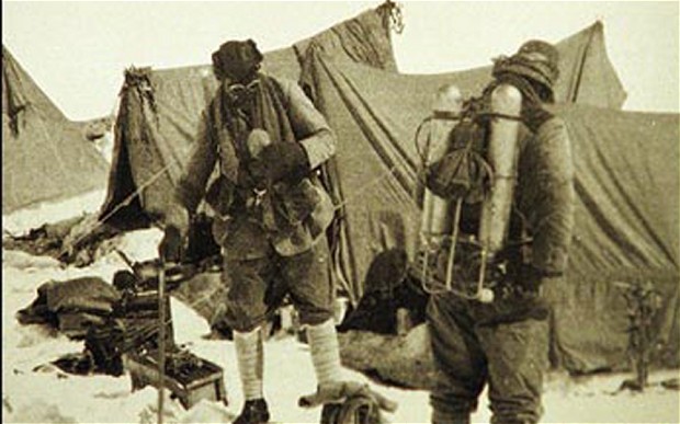 Джордж Лей Мелъри и Андрю Ървин в подготовка за изкачването на Еверест