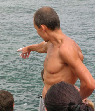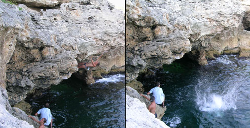 Пристигнахме в селото на 31 юли. Веднага отидохме на скалите. Явор и Мишо имаха опит в този вид катерене, но за мен и Райна това беше нещо съвсем ново и непознато. Стояхме безучастно на брега. С ужас гледах смелите си приятели, катерещи се по 10-метровите надвесени скали. На следващия ден Райна вече се присъедини към тях и очевидно много й харесваше плуването с еспадрили и торба за магнезий. След няколкодневно зяпане и аз се престраших. Разбрах, че катеренето над вода има своя чар и съвсем не е толкова безумно, колкото изглежда отстрани. Комбинацията между катерене, плуване и весела компания е страхотна. Дните минаваха неусетно.