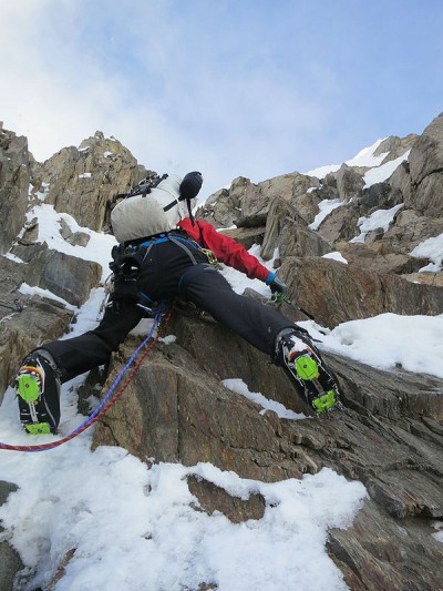 Те преодоляха първите 360 м по билото с взаимна осигуровка и започнаха да използват последователна едва на по-трудния терен. След мръкване алпинистите все още се намираха на билото и едва след преминаването на поредните няколко дължини успяха да намерят местенце за бивак, който трудно може да бъде наречен комфортен.