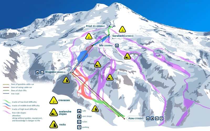 По данни на един от най-добрите познавачи на зимните курорти в света – англичанина Патрик Торн, френски инженери проучват възможността за строителство на въжена линия (без да се уточнява каква – седалкова или кабинкова) по склоновете на кавказкия първенец до височина 4700 и дори до 5000 метра.