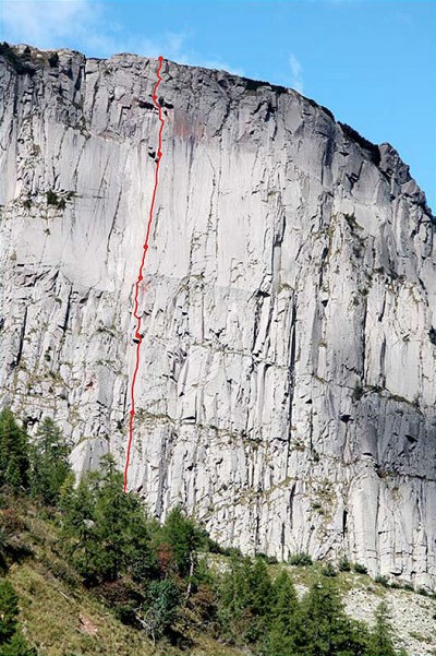 Старият проект, от който се заинтересува Маноло, преодолява страничната стена на големия централен винкел. За да стигне до него, Маноло трябваше да премине първото въже от маршрута “Dell’antonio – Briosi”. След това тръгна на ляво по девствен терен, по който изкатери четири нови дължини, съответно от 30, 15, 45 и 30 метра. Финал на тура са 15 метра от линията “Gran Diedro” (“Големия винкел”).