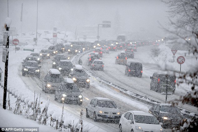 Сняг и лед във Френските Алпи блокираха 15 000 автомобила, като спряха празничния трафик до и от ски-курортите в района, съобщиха френски медии. Страната обяви оранжев код за обилни валежи, докато местните власти се опитваха да настанят пътниците през нощта.