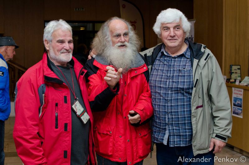 Доайенът на българския алпинизъм проф. Георги Атанасов и Боян Петров (в средата), с Виктор Соколов,