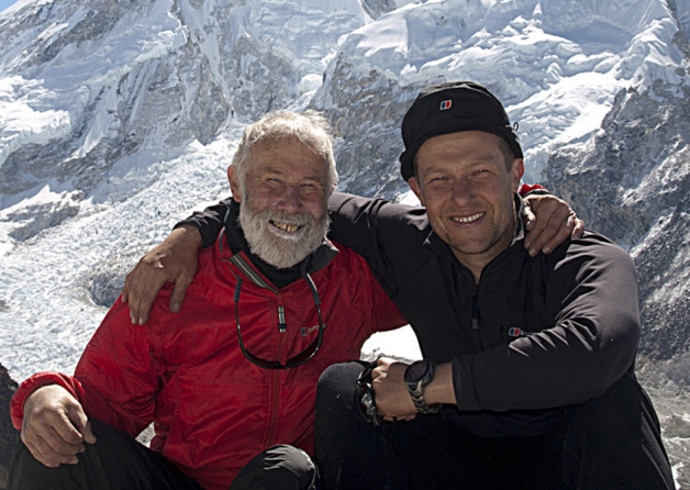 Крис Бонингтън с по-големия си син Джо на фона на Еверест