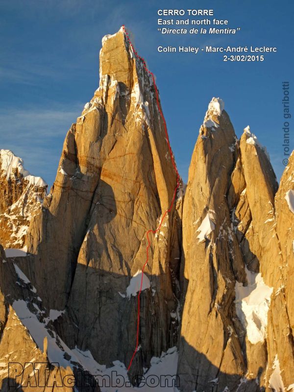 Колин Хейли (Colin Haley) и Марк-Андре Льоклерк (Marc-André Leclerc) записаха поредно чудесно постижение в Патагония. Свръзката за първи път в историята, тръгвайки по северната стена на Серо Торе, в рамките на едно цялостно изкачване, прокара нов, дълъг вариант на маршрута “El Arca de los Vientos”.