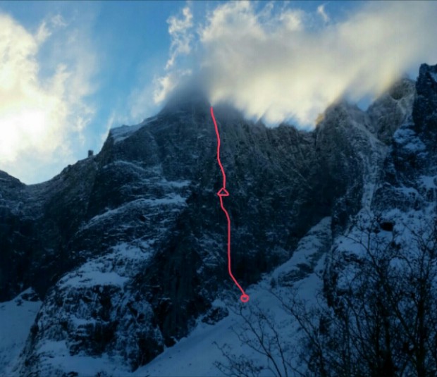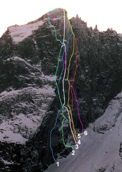 Изкачването бе направено в трудни зимни условия. Стената бе покрита с лед и големи количества сняг. Пукнатините бяха заледени, почти всеки ден падаха прашни лавини. Не мина и без проблеми с газовите машинки и бивачната платформа. Трудностите на маршрута стигаха до A4, най-много въжета бяха A3.