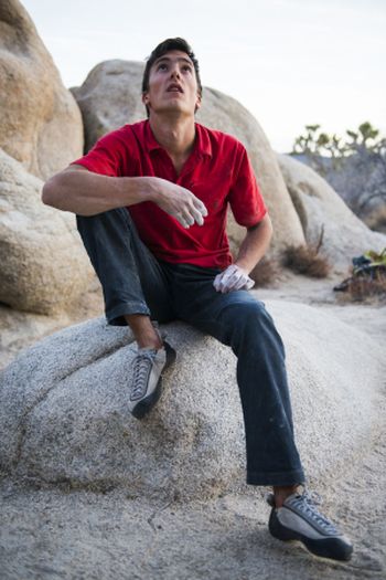 Мейсън Ърл при изкатерването по 35-метровата пукнатина (5.14-)
