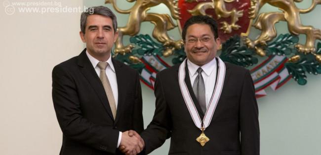 Президентът Росен Плевнелиев и Махеш Шрестха след церемонията по награждаването