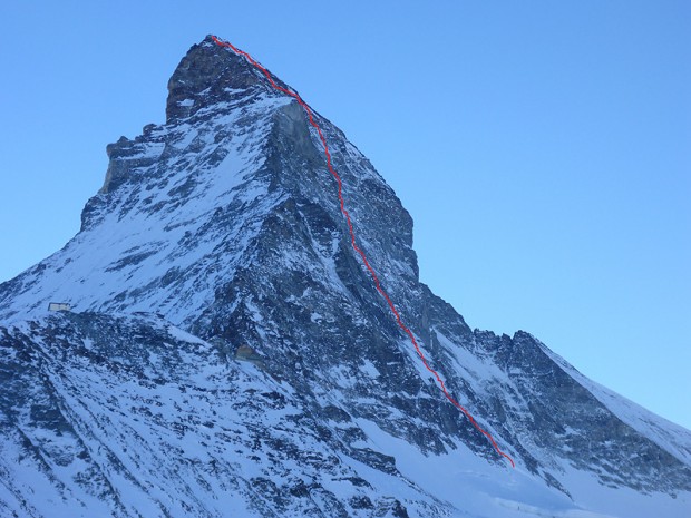 Северната стена на Матерхорн с Маршрута на братята Шмид