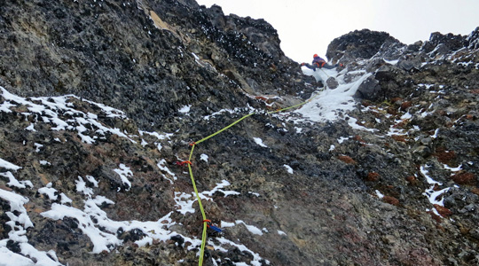 Колин Хейли по третото въже на ”Kimchi Suicide Volcano”