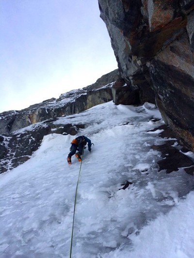 “Chad Kellog Memorial Route” се състои от седем въжета с различна дължина и предлага по малко от всичко. По него има леден участък AI4, микстово въже M6 R, което е crux-ът на тура, а така също и въже, което се преминава с изкуствени опорни точки по headwall-а.