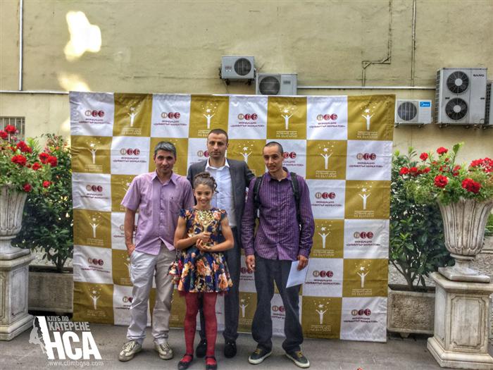 Дея със своите треньори Станимир Желязков и Ивайло Радков, заедно с учредителя на фондацията Димитър Бербатов