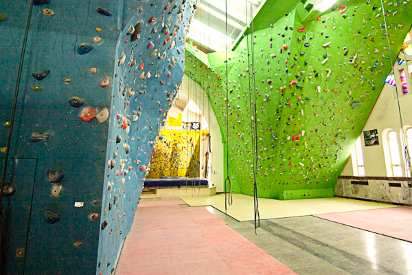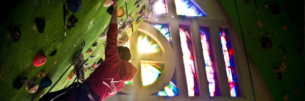 Под сводестите тавани на някогашната готическа катедрала има отлични възможности за разполагане на изкуствени катерачни стени. А светлината, която прониква през стъклописите по прозорците, прави обстановката леко сюрреалистична.