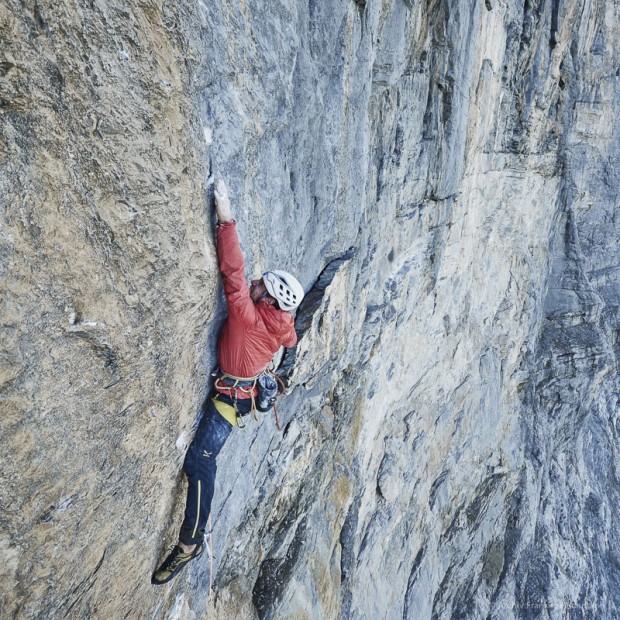 Долната част на премиерния тур частично съвпада с Класическия маршрут. От Щоленлох (Stollenloch)** Шели и Яспер продължиха право нагоре, пресичайки на няколко пъти линиите “La Vida es Silbar” [7c, 900 м, Даниел Анкер (Daniel Anker), Щефан Зийгрист (Stephan Siegrist), 1999 г.] и “Paciencia” (8a, Щефан Зийгрист (Stephan Siegrist), Ули Щек (Ueli Steck)]. Между 2009 и 2013 г. Шели и Яспер използваха всяка свободна минута и периодите хубаво време и преодоляха две трети от стената по неочаквано монолитна скала. Катереха “отдолу”, осигурявайки се традиционно, но на определени места оставяха след себе си клинове и спитове.