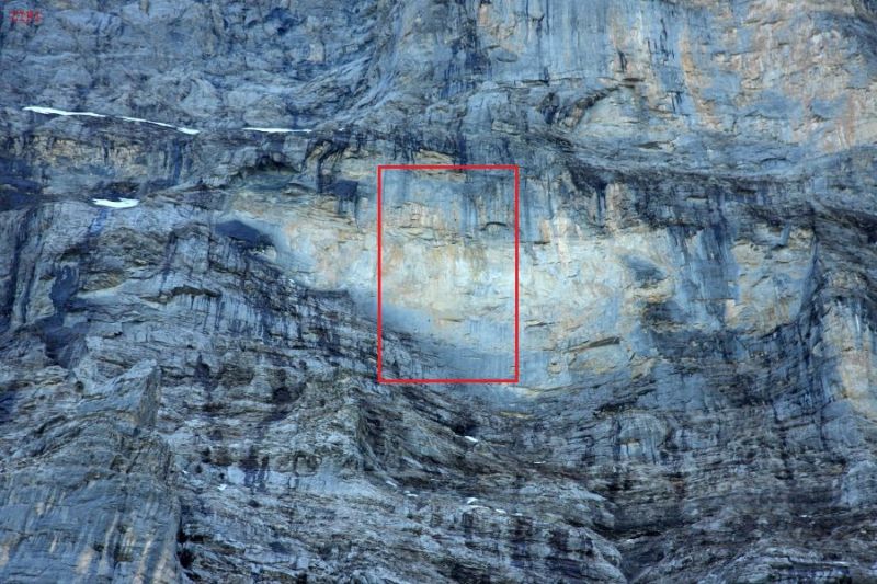 *Rote Fluh – Червената стена, надвесен фрагмент от стената, който се заобикаля с Траверса на Хинтерщойсер (Hinterstoisser Traverse), преминат за първи път от знаменития немски алпинист Андреас Хинтерщойсер (Andreas Hinterstoisser, 3 октомври 1914 г.-21 юли 1936 г.), с което е намерен “ключът” към успеха по стената, използван от Андерл Хекмайр, Лудвиг Фьирг, Хайнрих Харер и Фриц Каспарек при първото им изкачване на 24 юли 1938 г. Траверсът започва от легендарните прозорци в стената.
