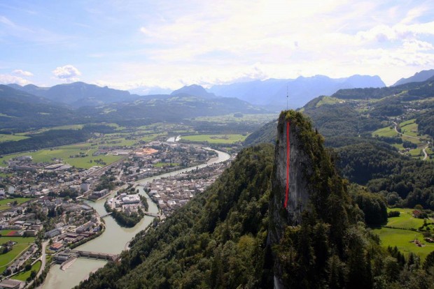 Новият маршрут на Алекс е на живописната скала Клайнен Бармщайн (Kleinen Barmstein), разположена над град Халлайн (Hallein) в Австрия, само на около 20 мин от Залцбург.