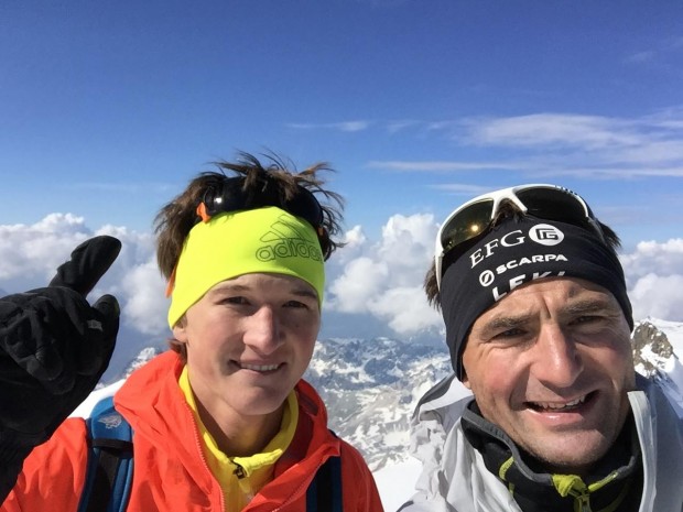 Михи Волебен и Ули Щек на Пиц Бернина – първият от 82-та върха