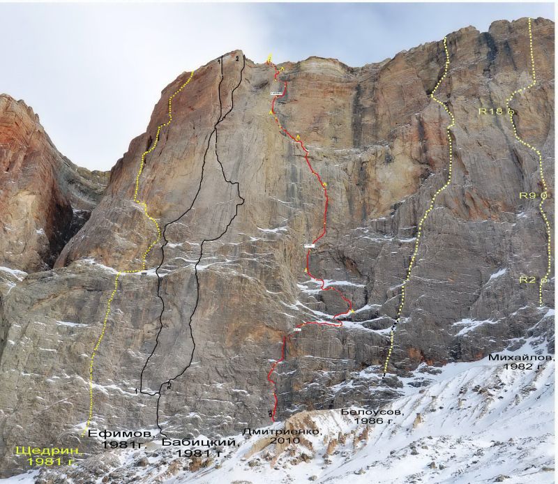 Северозападната стена на Яръдаг (Еръдаг) с маршрутите по нея
