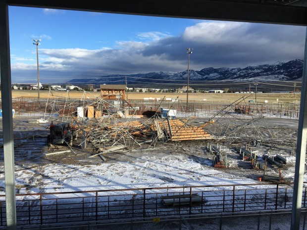 Издигането на изкуствената стена, която бе разположена на арена за родео, започна преди няколко седмици. Но онзи ден, в сряда, вятърът катурна почти 20-метровата конструкция. Стойността на изграждането на съоръжението възлиза на 35 000 щатски долара.