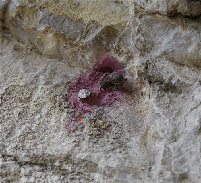 Получихме снимки с изрязаните болтове от сектор G на Света Троица - Велико Търнмово, както и изрязани болтове в краищата на традиционните маршрути вдясно от манастира.