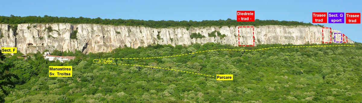 3. Обособяване на зона за трад катерене вдясно от Сектор “G” и продължаваща до края на скалите.