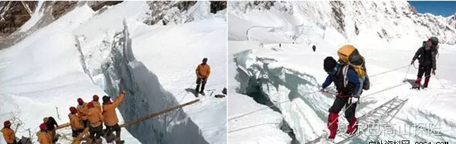 През 1963 г. американската експедиция под ръководството на Нормън Диренфурт използва дървени стълби за преодоляване на пукнатините в ледопада Кхумбу.