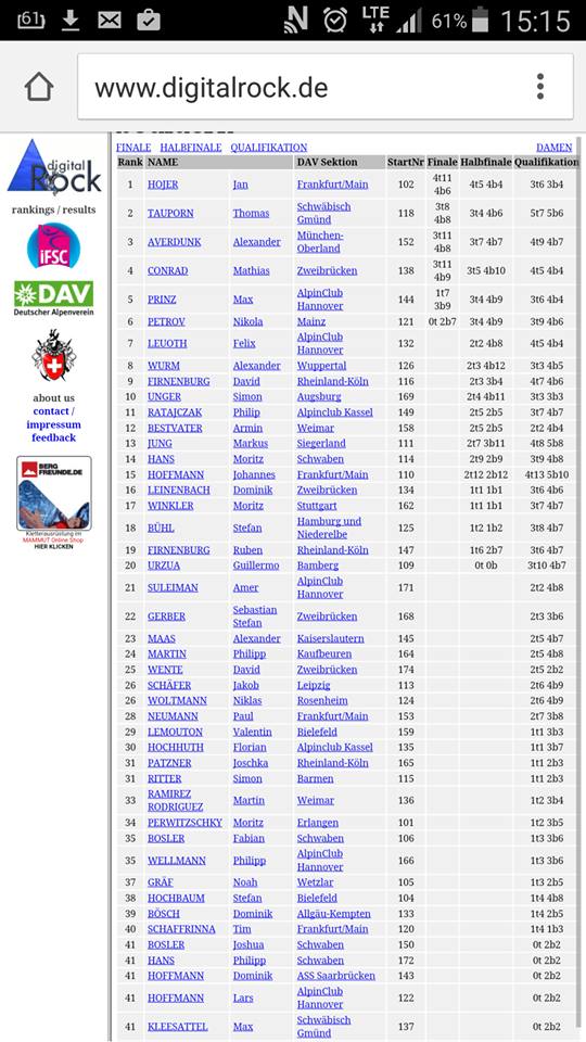 През изминалата събота се проведе първи кръг от Държавното първенство по боулдър в Хановер, Германия. В състезанието взеха участие над 70 катерачи при мъжете, сред който бе и Никола Петров - Кайцата, който живее и тренира в Германия от една година.