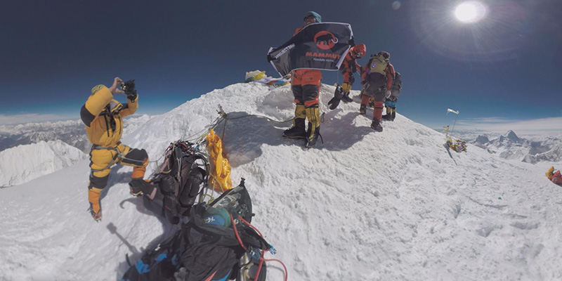 За документирането на Класическия маршрут към Еверест фирмата избра група опитни шерпи – Лхакпа Шерпа (Lhakpa Sherpa, ръководител), Пемба Ринджи Шерпа (Pempa Rinji Sherpa), Кусанг Шерпа (Kusang Sherpa) и Анг Каджи Шерпа (Ang Kaji Sherpa). Те изнесоха на върха специално конструиран комплект от шест свързани камери “GoPro”, правещи снимки на всеки 30 секунди, както и апаратура за непрекъснато филмиране: