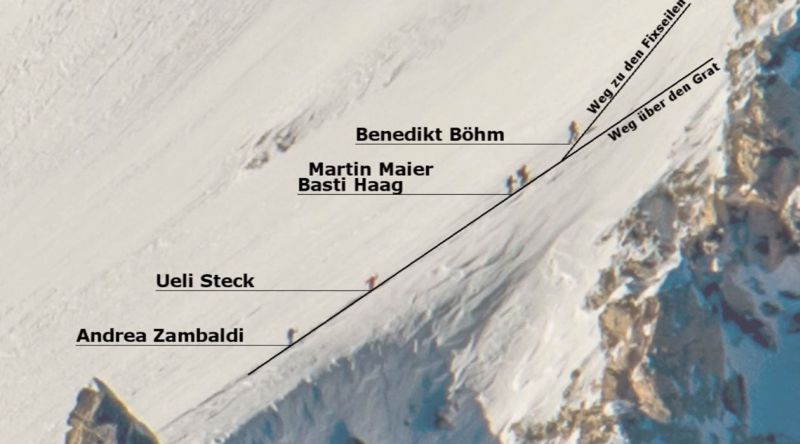 На 24 септември 2014 г., във фаталния ден, според оцелелия Бенедикт Бьом, начело на групата е бил Себастиан Хааг. Немецът се отклонил малко от гребена, с което предизвикал смъртоносната лавина.