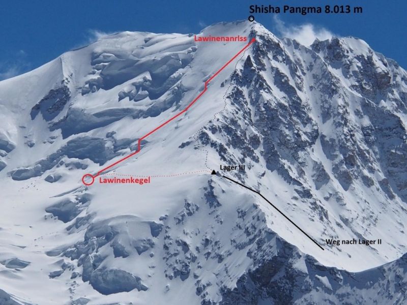 Шиша Пангма – линията на лавината и пътят на изкачването