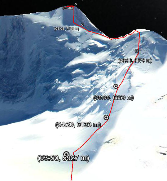 Анджей Баргиел започна изкачването си вчера около 14.00 часа българско време, преодоля 1700 м денивелация и стигна до лагер 3.