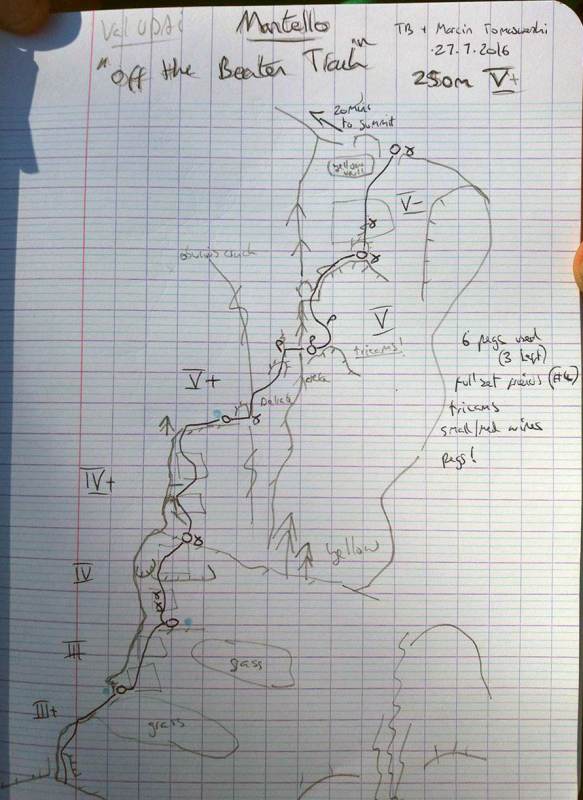 В деня, в който бяха връчени наградите, имах възможност да се запозная с един млад алпинист на име Том Балърд, с когото по време на сутрешната разгрявка преди презентацията успяхме да изкатерим новия маршрут “Off the beaten track” (V+) по стената на Монтело.