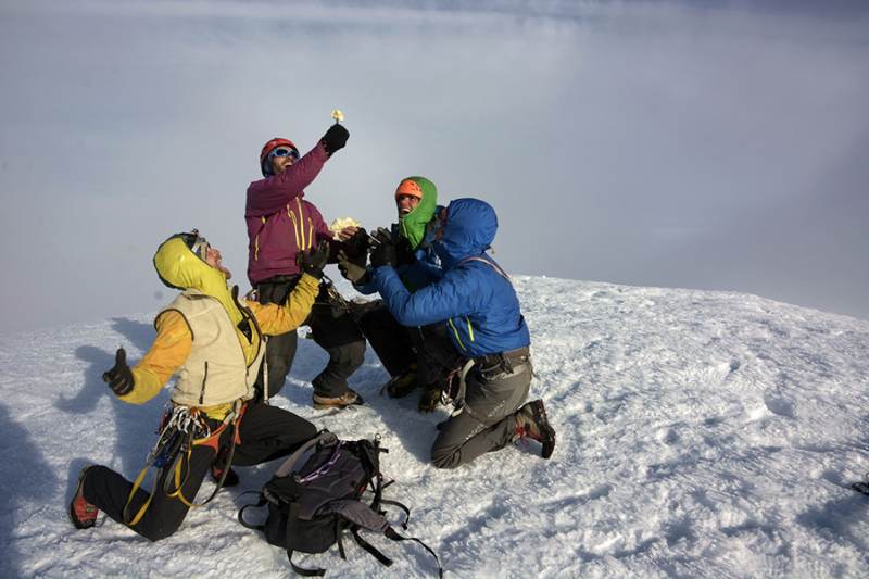 Известна изненада за екипа бе първият леден участък от маршрута. По него той срещна надвесени фрагменти, които поради скромния инвентар за катерене по лед (само четири цеви) се превърнаха в немалко предизвикателство.