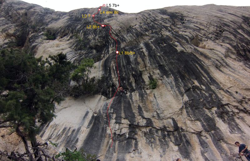Натрупването на трудни дължини и наличието на ключово място с оценка 8c правят “Hossanna” най-трудната линия от този тип във Франция.