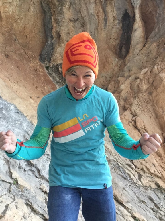 Белгийката е на 42 г. и дори не помисля да сложи край на приключението си с трудните маршрути. Доказателства? Едно от тях е последното й изкачване по маршрута “La Rubia” (8c+).