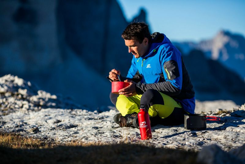 - напитка с голямо количество захар от типа “Carbo” или изотонична напитка (за изкачвания в планини от типа на Татрите или Алпите се старайте да вземате 1 литър/ 1 литър и половина течност, във високите планини – 2 литра). Напитката подготвяме по време на бивака предния ден или рано сутринта преди тръгване), енергетичен гел (2 броя по около 300 килокалории, аз лично използвам тези с бързоусвоими въглехидрати),