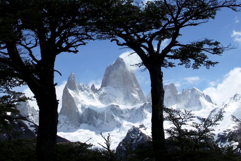 Иконата на Патагония – върхът Фицрой (Monte Fitz Roy, Cerro Chaltén, Cerro Fitz Roy), е недалеко от градчето